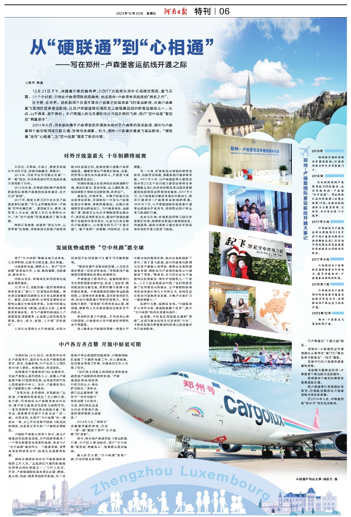 從“硬聯(lián)通”到“心相通”——寫(xiě)在鄭州-盧森堡客運(yùn)航線(xiàn)開(kāi)通之際